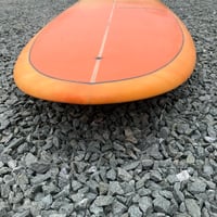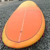 We have this 9'6 sample to buy now. Beautiful orange and yellow fog fade on the deck offsetting a stunning orange and yellow drag tint on the bottom and rails.